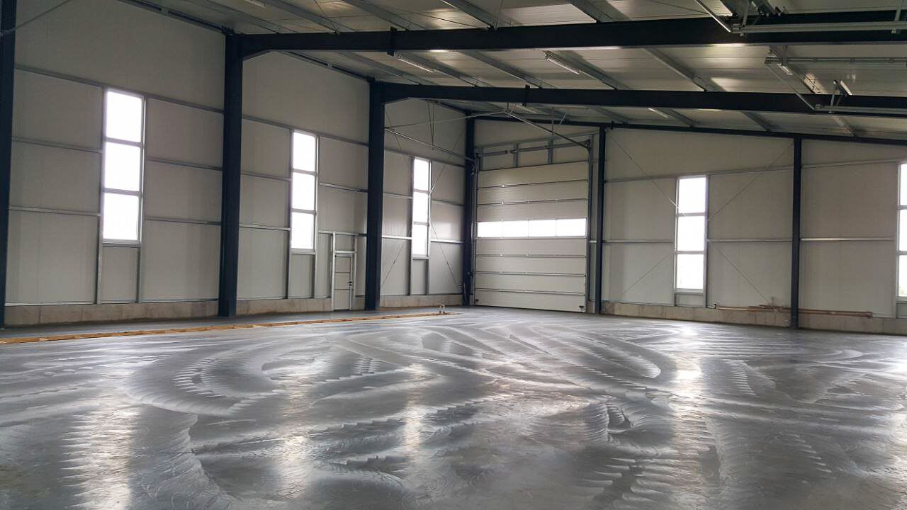 Diese Anlage wurde für die Lagerung und Wartung von großen Landwirtschafts- und Baumaschinen konzipiert. Für die Reparatur und Wartung von Maschinen wurden spezielle Gruben angelegt. Es wurde ein Betonboden betoniert und ein Betonsockel mit einer Höhe von 80 Zentimetern errichtet. Auch das Polieren und alle notwendigen Vorarbeiten wurden durchgeführt.